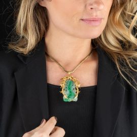 NECKLACE WITH A BIG JADE PENDANT IN GOLD
