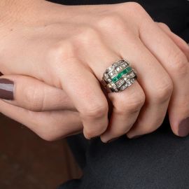 in oro 14kt, impreziosito da smeraldi taglio carré per ct 0.60 circa, diamanti taglio brillante e huit huit per ct 0.60 circa, mis. 13/53, gr. 6