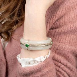 composto da due grandi anelli in giada uniti da una struttura in argento, diam. interno cm 6, circonferenza cm 18, gr. 136