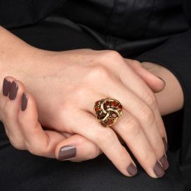 in oro giallo 18kt, realizzato a forma di nodo, impreziosito da quarzi taglio ovale per ct 2.70 circa, mis. 11/51, gr. 13