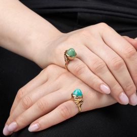 TWO SMALL TURQUOISE RINGS IN 18KT YELLOW GOLD