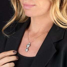 UNOAERRE NECKLACE WITH A DOUBLE HEART PENDANT IN 18KT WHITE GOLD