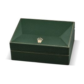 cassa in oro giallo 18kt, fondello serrato a vite, corona marcata, ghiera liscia in oro giallo 18kt, quadrante bianco, grafica nera, indici applicati al trizio, datario a ore tre con lente cyclope, movimento a carica automatica cal 1161 n. 77325, bracciale oyster in oro giallo 18kt a maglie rivettate finali 66, lungh. interna cm 18, chiusura a scatoletta marcata Rolex, vetro plastica, gr. 54. Diam. mm 26. Corredato di scatola.
