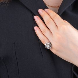 in oro bianco 18kt, impreziosito da un diamante centrale taglio brillante di ct 1.30 circa, circondato da diamanti taglio brillante e huit huit per ct 0.70 circa, firmato "Buccellati", mis. 8/48, gr. 3