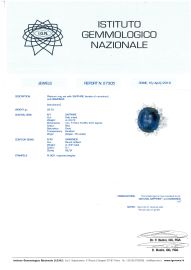 in platino, impreziosito al centro da uno zaffiro ceylon taglio ovale di ct 23.73, circondato da diamanti taglio brillante per ct 3.91, mis. 12/52, punzone Pt 900, gr. 22. Corredato di certificato IGN del 16/04/2019 attestante le caratteristiche e l'origine geografica dello zaffiro.