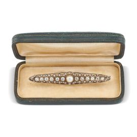 PEARL AND DIAMOND BARRETTE BROOCH IN 18KT WHITE GOLD