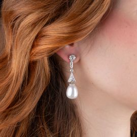 PEARL AND DIAMOND DROP EARRINGS IN 18KT WHITE GOLD