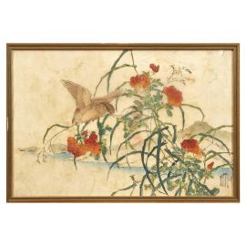 日本十九世纪 花鸟图 纸本设色 尺幅30 x 46厘米