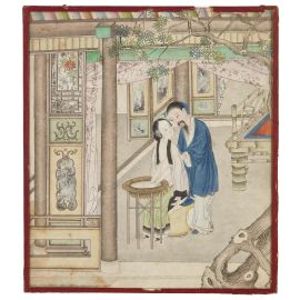 十九世纪 中国 春宫图 纸本设色 裱于玻璃 每幅 31x27厘米