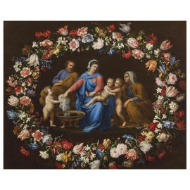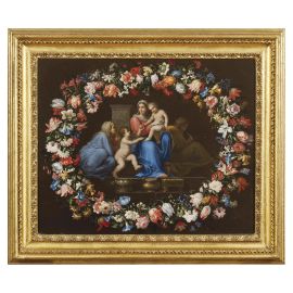 WREATH OF FLOWERS WITH THE HOLY FAMILY (from Nicolas Poussin)