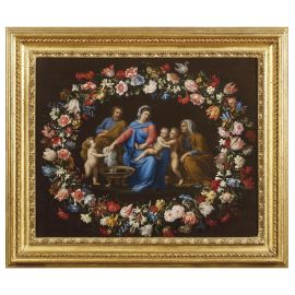 GHIRLANDA DI FIORI CON SACRA FAMIGLIA (da Nicolas Poussin)