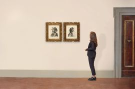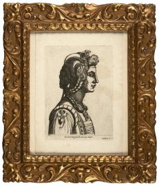 on the recto, at the bottom of the drawing of the Count of Canossa: "Canossiae familiae nobilissimo stipiti Michaelangelus Bonarotus delineabat / Ant. T. inc. 1613"; at the bottom of the drawing of the Marchioness of Pescara: "Michaelangelus Bonarotus inven. / Ant. T. inc. 1613"