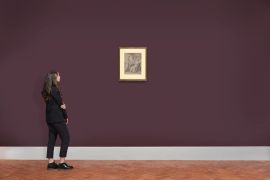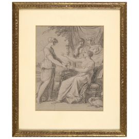 black chalk heightened with withe on prepared grey paper, 340x270 mm