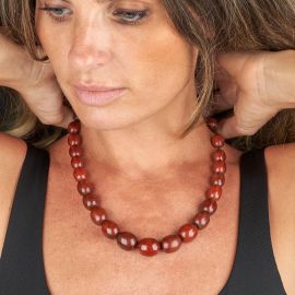 realizzata ad un filo di sfere in ambra ovoidali e digradanti da mm 19x16 a mm 13x10 circa, lungh. cm 60 circa, gr. 52