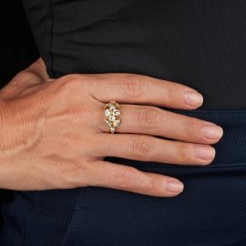 in oro giallo 18kt, impreziosito da diamanti taglio brillante e navette per ct 1.70 circa, punzone 750, mis. 14/54, gr. 6