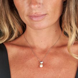 PEARL AND DIAMOND NECKLACE IN 18KT TWO TONE GOLD