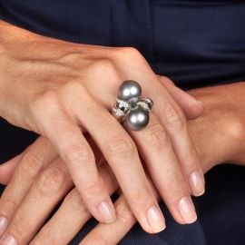 ANELLO CONTRARIE CON PERLE SOUTH SEA E DIAMANTI