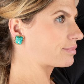 TURQUOISE CLIP EARRINGS IN 18KT YELLOW GOLD