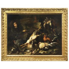 NATURA MORTA DI CACCIAGIONE CON FIGURA