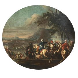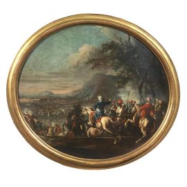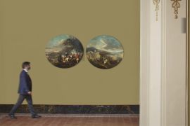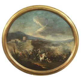 coppia di dipinti ad olio su tela, cm 100x112,5