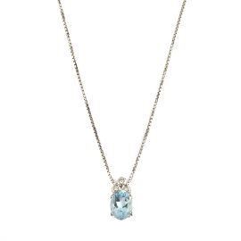 in oro bianco 18kt, composta da collana e paio di orecchini, impreziositi da tre acquamarine taglio ovale per ct 3.20 circa e da diamanti taglio brillante per ct 0.10 circa, punzoni 750 e del fabbricante, collana lunga cm 42, paio di orecchini lungh. cm 2, gr. 8 complessivi