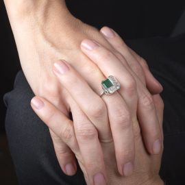 EMERALD AND DIAMOND RING IN 18KT WHITE GOLD