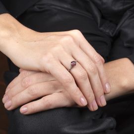 in oro bianco 18kt, impreziosito da una rubellite sfaccettata, mis. 13/53, gr. 2