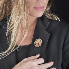 SMALL REMONTOIRE POCKET WATCH WITH A FLORAL BROOCH IN 14KT GOLD