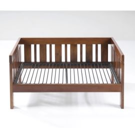 struttura in legno, cuscino e materasso rivestiti in tessuto nei del blu e giallo