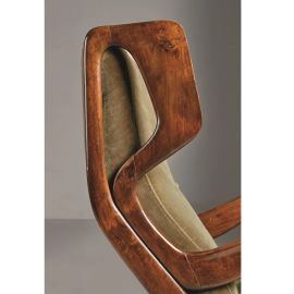 ARMCHAIR, WOODEN STRUCTURE, GREEN FABRIC UPHOLSTERED