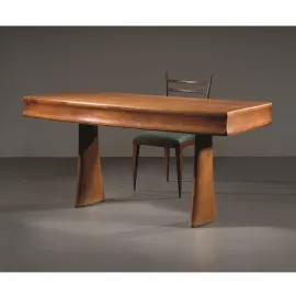 WOODEN DESK AND CHAIR, GREEN FABRIC UPHOLSTERED SEAT