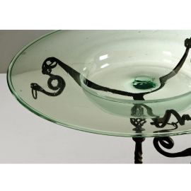 WROUGHT IRON RISER, GREEN GLASS BASIN