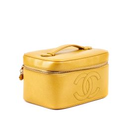 Oggetto di culto per le Fashion Authorities, questo bauletto in pelle Caviar verde lime con metalleria in ottone dorato, con doppio cursore con finale logo CC. Corredato di ID Card che lo data ai fine anni '90.