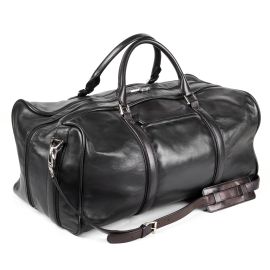 Morbidissima pelle nera con metalleria color argento lucido. Base rigida con piedini, doppio manico e tracolla staccabile.