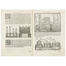 In folio (300 x 205 mm); [12], 143, [1] pagine. Frontespizio architettonico inciso in legno, numerose illustrazioni xilografiche nel testo (restauri alle prime due carte, fioriture sparse.) Legatura moderna in vitellino verde, sui piatti decorazione di ferri a secco, titolo in oro su tassello rosso al dorso.