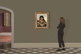 BAMBINA CON MAZZOLINO DI FIORIolio su tela, cm 59x45,5firmato lateralmente a destra