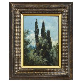PAESAGGIO CON CIPRESSIolio su tavoletta, cm 23,5x17firmato in basso a sinistra