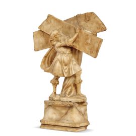 gruppo scultoreo in alabastro raffigurante l’episodio biblico raccontato nel libro dei Giudici (16, 1-3) in cui Sansone scardina le porte di Gaza e sale sul monte che guarda verso Ebron; cm 42x33x11