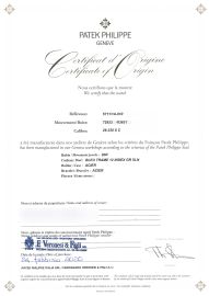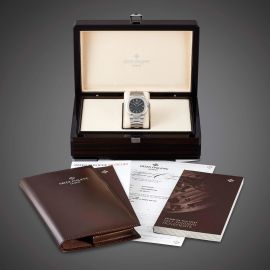 cassa monoblocco in acciaio, fondello con movimento a vista, lunetta liscia in acciaio, quadrante blu, datario a ore tre, indici applicati, movimento a carica automatica cal 26-330SC n. 7293329, bracciale a maglie in acciaio, lungh. interna cm 19 circa, chiusura a scomparsa marcata Patek Philippe, vetro minerale. Diam. mm 40. Corredato di scatola, controscatola, garanzia, libretto, astuccio da viaggio e tre maglie aggiuntive. Condizioni pari al nuovo.