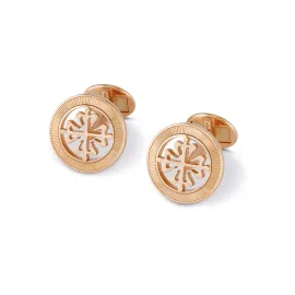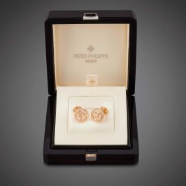 Il lotto si compone di un paio di gemelli Patek Philippe, in oro rosa 18kt, di forma circolare, recanti emblema traforato e firmati Patek Philippe, dim. mm 22x19, gr. 15. Corredati di scatola originale.