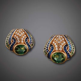 BULGARI PAIO DI ORECCHINI CON PERIDOT ZAFFIRI E DIAMANTI