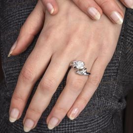 in oro 14kt, impreziosito da un diamante centrale (smontato) di ct 1.78, colore G, purezza SI2, affiancato da diamanti taglio brillante per ct 0.40 circa, punzone 14kt, mis. 15/55, gr. 7. Corredato di certificato IGN del 06/02/2025 attestante le caratteristiche del diamante centrale.
