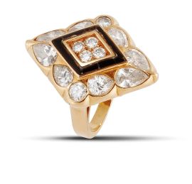 in oro giallo 18kt, realizzato a forma di rombo, impreziosito da inserti in onice (difetti) e diamanti taglio a goccia e brillante per ct 3.90 circa, firmato "Maugeri", mis. 13/53, gr. 13