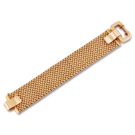 in oro giallo 18kt, con ampia fascia realizzata a maglia tessita, punzoni 750 e del fascio, lungh. cm 20, gr. 99