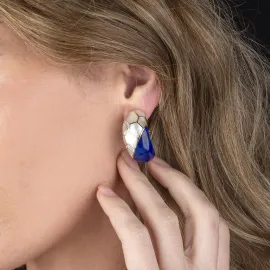 MOTHER OF PEARL LAPISLAZULI AND DIAMOND EARRINGS IN 18KT YELLOW GOLD