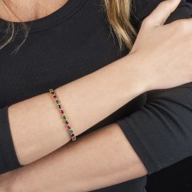 in oro giallo 18kt, impreziosito da una fila di zaffiri, rubini e smeraldi taglio ovale per ct 8 circa, e da diamanti taglio brillante per ct 0.50 circa, lungh. cm 17,5, gr. 12