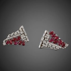 SPILLA A DOPPIA CLIP CON RUBINI E DIAMANTI
