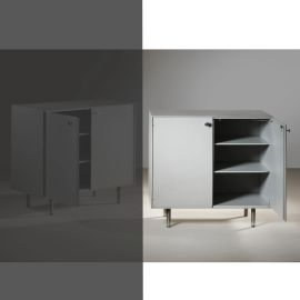 in legno laccato nei toni del grigio