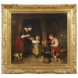 KITCHEN INTERIOR WITH GRANNY AND GRANDCHILDREN