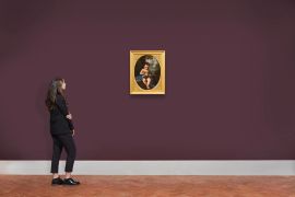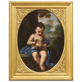 PUTTO CON UCCELLINI IN UN PAESAGGIO